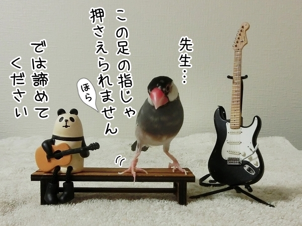 えぇーー 2016年12月30日 ∑(゚▽゚ノ;)ノ えぇーー。ふたりとも諦めるのはやーーーい。今年も一年ありがとうございました。(ランキングに参加中。ポチッと応援して頂けると嬉しいです。)先日、カウンター数200万を超えました。モカ共々、感謝申し上げますm(_ _)m 「ブンチョ日誌」カテゴリの最新記事 タグ :#コンコンブル#ふきかえ < 前の記事次の記事 > コメント コメント一覧 (14) 1. アイ-ン 2016年12月31日 00:04 モカ様ごきげんよう😃シナモン様です(^o^) ギター買ってもらったのですか?良いですなぁ😃 でも、ギターは抱えなくては、ならないので、モカ様でも、無理ですなあ😁 飾っておくのが、良いと思います🎵モカ様、シナモン様、あごハゲに、なりました。そうです、チャンパゲになりました😭寒いのに、あごが、ス-ス-します(´д`|||)早く生えてこい、羽毛ですなあ😁 2. モエ号 2016年12月31日 00:51 BECKのそのサイズのドラムセットなら持ってますが、んーモカ様はドラムも厳しそう(*°艸°)笑笑 モカ様!ハハー!この一年、沢山の癒しと和みと、笑いをありがとうございました! 来年は酉! モカ様の年でもありますよー! 私の年賀状は、もちろん!文鳥にもしましたよー! モカ様、お正月の間だけなら、偉そうにしてもいいかもよ?(*°艸°)笑 3. ひとみチャン❤ 2016年12月31日 01:54 モカチャン、りんサン、ムスメチャマそして、ママイチャン💘 1年間、ありがとうございました🙇 🐤を見て笑うことの出来なかった私を 毎日、楽しませて頂きました☺ 本当に感謝してます🎵 来年はいよいよ、🐤酉年🐦✨ きっと、素敵な1年間となる事でしよう❤ 皆様の健康とご多幸をお祈り致します❗ モカチャン、りんサン、また楽しませて下さいマセ🍀 4. 涼子 2016年12月31日 08:49 楽しくて可愛いくて、 オチャメなモカちゃん( ´艸`) 沢山癒やされました♪ りんさんの吹き替えブログ大好きです! 来年は酉年(*^_^*) 今年以上に多くの幸せが訪れますように♪ またいっぱい可愛いモカちゃんが 見れますように(//∇//) モカちゃん♪お正月は、いっぱい 遊んでもらってね(*^_^*) りんさん、来年もよろしくお願いします♪ 5. チュンママ 2016年12月31日 10:14 何でもチャレンジするモカちゃんですが、ギターは残念でしたね 諦めが肝心とも言いますから 笑 先生共々あっさり😄😄 今年もモカちゃんとりんさんに楽しませて頂きました😀 ありがとうごさまいました💕 来年も楽しみにしています🐤 私もなんとか年賀状書き終えました チュンの写真入りで、文鳥の年賀状にしました🐤 りんさん一家も良いお年をお迎え下さいね🎍 6. たまゆら 2016年12月31日 10:55 ではカエルさんに弦を押さえてもらって、モカちゃんが弾くというのはどうでしょう(^^)b 今年もたくさん楽しませていただきました♪来年も期待していま~す よいお年をお迎えください(*´-`) 7. ルーガ 2016年12月31日 11:26 モカちゃん、抱えるのは無理なので、まずギターを下に置いてお琴のように、その足の爪でつま弾くのはどうでっしゃろ?? モカちゃんはカワユイ桜文鳥さんなので、はじめに 「さくらさくら」をマスターしたら素敵かも~~。(^^♪笑) って、大晦日でやる事満載なのに現実逃避のルーガです。 御節も面倒なので詰め合わせのヤツを買っちまいました。(爆) この一年、モカ様には多大な癒しと和みを頂き、心より感謝を申し上げます。 来たる酉年もどうぞ宜しくお願い致しま~す。^^ 8. きょ 2016年12月31日 12:12 一年の、最後の最後にまでも、 新しいことに挑戦するモカちゃん、 そのハート、ステキ! えー、えー、えー、今?と、 驚いた~。(笑) そして、あきらめが肝心ということも、 教わりました。(笑) 9. きょ 2016年12月31日 12:15 す、すみません、続きですー。(恥ずっ) 今年も一年、ありがとうございました。 来年も、楽しみにしています! 皆様に会えて、嬉しい一年でした! 10. さつき 2016年12月31日 16:58 遠近法で写ったギターはチチのかと一瞬思いました。^^ ピアノ同様指の短い私はギターもちょっとだけかじったけど大変でした。 Fなんかはもう必死で指を伸ばして?弾きました。 モカちゃんの苦労が分かるわぁ~?? 今年も残すところあと1日ですね。 今年は愛文鳥さんの旅立ちを見送るという大きな出来事のあった年でした。もう少しであれから1年経ちます。 とり年を一緒に迎えたいと里子としてお預かりした時から思って共に暮らしてきました。その夢は叶わず、私の所へ来てくれて幸せだったのかどうか分からないのですが、私にとってはかけがえのない時間をたくさん与えてくれました。 文鳥を飼って様々な価値観も変わりました。愛おしい命、すべてが大切な生命。 モカちゃんやママイちゃんと出会えたのも愛文鳥のお陰でした。モカちゃん、貴い存在。 来年もそのままで、暖かな時を共有させて下さい。 今年もありがとうございました。来年も宜しくお願いします。 11. りん(お返事) 2016年12月31日 18:02 ■アイーンさん 実はモカの為ではなく、旦那の机に飾ってあったのを発見して使っただけだ
