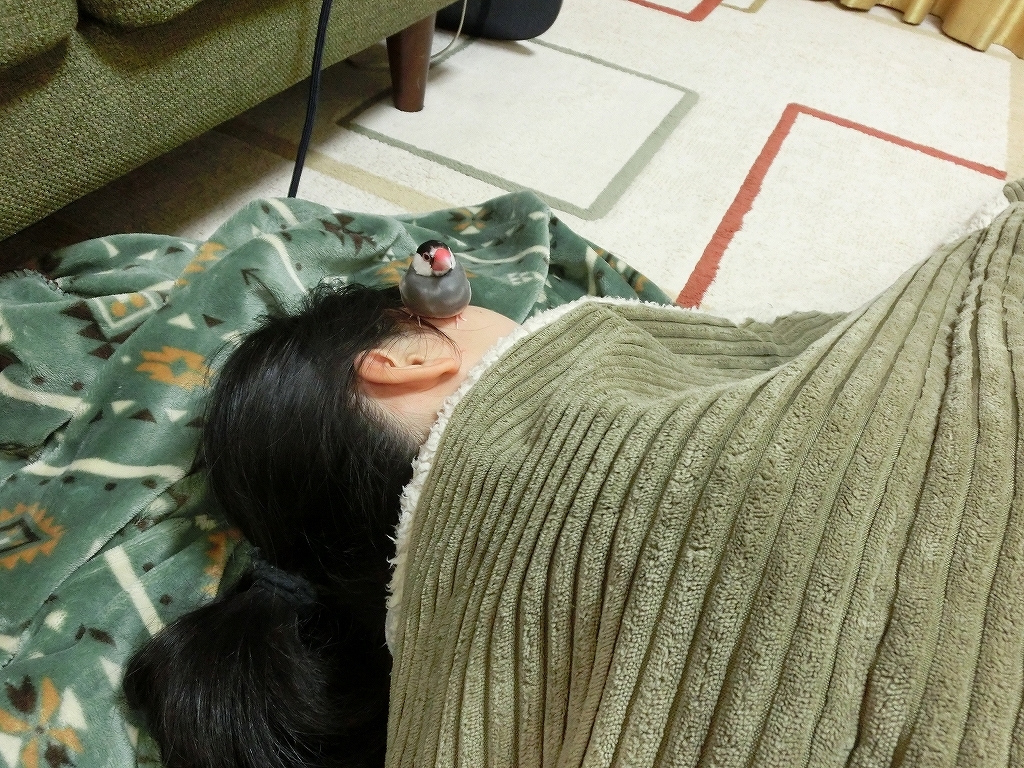 リビングで横になっている旦那の顔や首で餅になり、しっかり落とし物残していきます(^o^;)