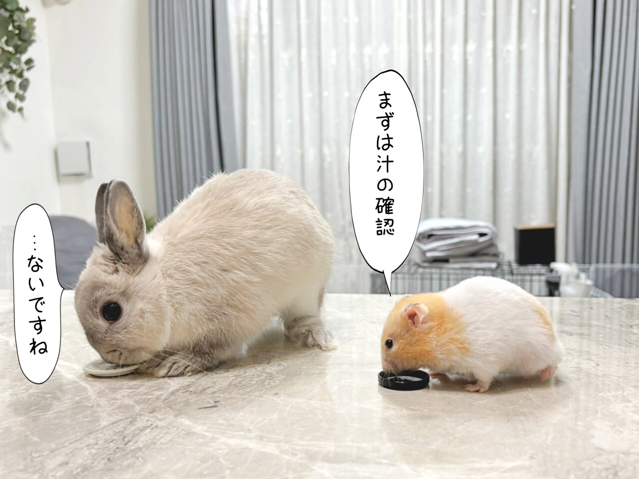 今日のプリンとうさぎのルリ(10/25追記) 2025年10月25日 本日またシャインマスカットをほんの少しずつおやつにあげました。前回と同様、とーーってもおいしそうにふたりで食べています。あっという間に食べ終えました。どうやらあまりのおいしさにおかわりを探しに行くようです。そんなところにおかわりなんてありませんよ。と言うと今度は各々が違う方へ。しかし当然、おかわりなどありません。すると、先輩が先頭に立って後輩を連れて探し始めました。どこを探しても、ありませんけどね。 ブログの過去記事から2日誌 ▼鳥さん用の高級(?)お風呂に入ってみるミント ▼片や砂浴び、片や水浴び。 ↘ライブドアアプリで更新通知を受け取れますご登録ありがとうございます☆ 「クリームバンデッドのプリン」カテゴリの最新記事 < 前の記事次の記事 > コメント コメント一覧 (8) 1. レオン 2025年10月25日 18:50 もう、無いよー! ルリー プリンー(笑) メンコイねー! 0 りん がしました 5. りん 2025年10月27日 23:35 >>1 ふたり並んで撮れると飼い主も嬉しいです。 しかしプリンはともかく、ルリはずっと探しています。笑 0 りん がしました 2. モカルー 2025年10月25日 18:52 かわいすぎるルリ君を全方向から堪能させていただき、ありがとうございます😊 お互いの匂いをフンフン嗅いでいるところがいつもかわいいです! 0 りん がしました 6. りん 2025年10月27日 23:37 >>2 突然ルリがプリンの方を振り返って顔を近づけるので、 プリンが思わず「わっ!」って感じで目を閉じるんですが、 その瞬間の写真が撮れるとかわいくてずっと眺めてしまいます。 0 りん がしました 3. シャルル 2025年10月25日 22:27 食いしん坊のプリンちゃんとルリ君😋美味しいマスカットを探す時の行動が息ぴったり🤣ほんと仲良しさんですね🤭 ルリ君のしっぽめちゃくちゃ可愛い🥰✨ 0 りん がしました 7. りん 2025年10月27日 23:38 >>3 そうなんですー。 うさぎのしっぽって短くて丸くて可愛いですよね!? 0 りん がしました 4. コバ 2025年10月25日 22:35 (@_@)o(^-^)oプリンちゃんとルリくんふたりでおやつのお変わりを探しに行くところが可愛いネ!😍きがあうのかな🐰🐭 0 りん がしました 8. りん 2025年10月27日 23:39 >>4 本当はお互いを特に何も気にしていない感じです。笑 0 りん がしました コメントフォーム 名前 コメント 記事の評価 リセット リセット 顔 星 情報を記憶 コメントを投稿する