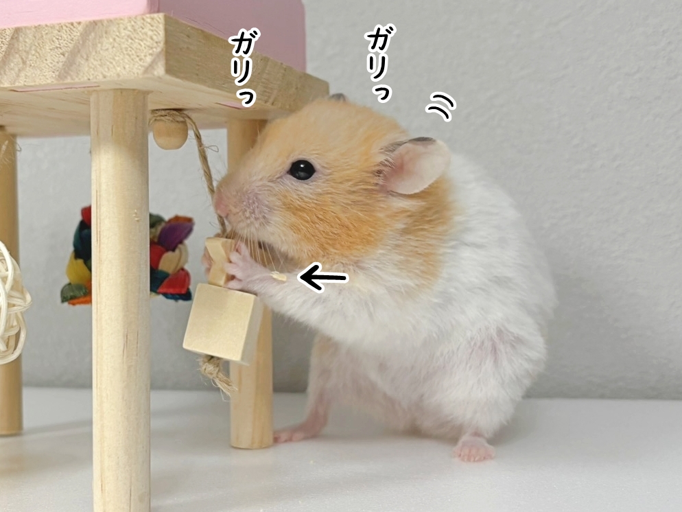 齧った木クズが落ちてる…!