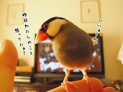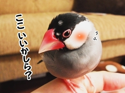 ここ、いいかしら? カテゴリ : ブンチョ日誌 昼間、まだ娘が学校にいる時間帯の放鳥時。PCに向かっている私の手にぴょん☆と飛び乗って来たモカ。いいよ~と言いたいところでしたがちょっと作業中だったので後ろのソファにポンッと置いて「もうちょい待ってね~」当然、そんなことがわかるはずもなく・・やっぱり乗って ... 2012年01月14日 続きを読む