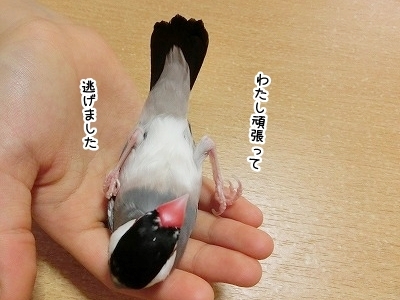 逃げる逃げる カテゴリ : ブンチョ日誌 洗濯物を外に干したくて放鳥中のモカをケージに戻すよう娘に言いました。ところが・・なにか変なスイッチが入ってしまったのでしょうか。リビングのこたつテーブル下を器用に使ってぴょんぴょんダッシュバタバタダッシュ逃げる逃げる。スルリと逃げる。捕まりやしない。大分 ... 2013年08月01日 続きを読む