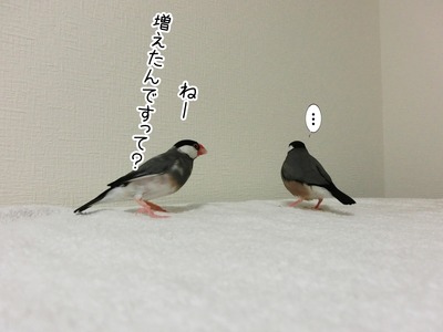 十中八九 カテゴリ : ブンチョ日誌 我が家の桜文鳥勢揃いで記念撮影をしていた時のことでした。 ラムに気づかれないようにふたりを左右端っこに置いたんですが限界になったラムがうるさい。即答。あっΣ(゜▽゜;) 危な…っ…と思ったら立場逆転。( ̄▽ ̄;)十中八九、このパターンですね。受け入れる気のないモ ... 2018年12月29日 続きを読む