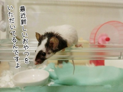 今日のちーたん(8/20追記) カテゴリ : パンダマウスのちーたん きのこハウスの中にお腹ペコペコのちーたんがいます。そこへ娘がおやつを入れたお皿を置くと…(乾燥ミルワームもいますが お気になさらず…) ちーたん匂いで大好物を発見。そして、シュッ!!!さて、ちーたんは何を持って行ったでしょうか。答え。乾燥のお豆腐でした~( ... 2019年08月20日 続きを読む