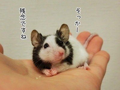 今日のちーたん(お知らせです) カテゴリ : パンダマウスのちーたん 先日我が家に来て2年目を迎えた、ちーたん。みなさんにもお祝いの言葉を頂いたばかりでお知らせするかどうか迷ったのですが一昨日、お尻の上(腰の下)辺りに悪い物を発見してしまいました。娘曰く、3日前頃に一度、あれ?ハゲっぽい?と思ったそうです。ということは、こ ... 2019年08月25日 続きを読む
