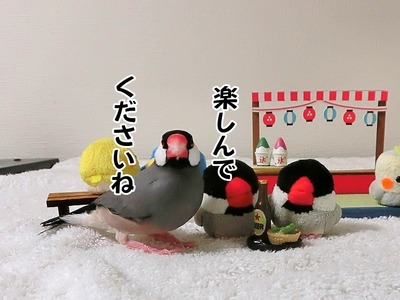 2020 お祭り開催しました カテゴリ : 文鳥たちのお店シリーズムニュマムたちと文鳥 先日の予告から… http://rin-buncho.blog.jp/archives/1077946003.html△お祭り計画中本日、ラム店長によるお祭りが開催されました。夏に楽しめる物を大放出です。ヒヨコちゃんのおかげで(先日のブログより)たくさんのムニュマムたちが来てくれました。店長、大サービス ... 2020年09月28日 続きを読む