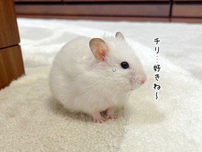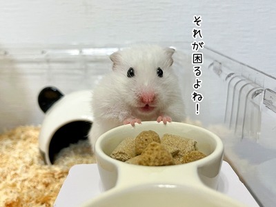 今日のミント(7/21追記) カテゴリ : 長毛ハムスターのミント あるところにふわふわで白いヤドカリがいました。白いヤドカリは頑張って体を伸ばして出てみましたがなかなかご飯が見つかりません。するとそこへ、大きな足音がしてきました。(横を旦那が通った)慌てて身を隠す白いヤドカリ。あんまりヤドカリが可愛すぎるので今からご飯 ... 2023年07月21日 続きを読む