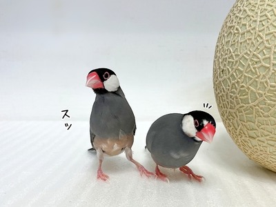 メロンと文鳥たち カテゴリ : ブンチョ日誌 あら、察しがいい と、ラムが逃げようとしたところではい、待ったーーー。メロンを頂きました。美味しそうだけれどあと1~2日ぐらいは外に置いておく方が良いとのこと。え~だったらせっかくだし記念撮影したいじゃないですか。しかも良い感じでふたりが止まれそうな止ま ... 2023年07月31日 続きを読む