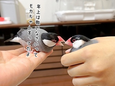 モカとラム、ラムとセラ カテゴリ : ブンチョ日誌文鳥たちの愉快な会話 セラはラムを追いかけます。それはラムがモカを追いかけ回していたように。弟として。仲間として。私がラムを手に乗せようとすると慌てて飛んで来るしラムが飛んで移動すると慌ててついて行くし特にそこにLOVEがあるわけではないけれど条件反射的に追いかけます。ただ、ラム ... 2023年07月24日 続きを読む