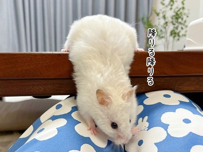 今日のミント(8/26追記) カテゴリ : 長毛ハムスターのミント ミントを連れて来て 座椅子に座りながらお腹の上にミントを置きます。とても可愛い。するとミントが思いついたように後ろを向き、わざわざシャッターチャンスを作ってくれました。なにこの良い眺め(笑)すり抜けたミントを連れて来てもまた足の間から逃げて行く。何度も何度 ... 2023年08月26日 続きを読む