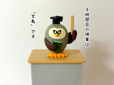 「文鳥」の授業 カテゴリ : 文鳥学校・文鳥病院(ごっこシリーズ) 国語 算数 理科 文鳥、みたいな感じでしょうか。というわけで、本日の4時間目の科目は「文鳥」で文鳥についての問題が出るようです。セラくんはね、いつまでたってもお子ちゃまなので4時間目まで起きていられないんですね。すると1問目が出たところで突然、セラが大声で立 ... 2024年10月23日 続きを読む