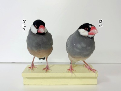 ふたりの心の声 カテゴリ : ブンチョ日誌 セラの心の声です。(いやこの写真そっくりですよね)ラムの声です。(いやだからこの写真もそっくりですよね)細かく見れば当然、シャープな方がラムでずんぐりしているのがセラだとか小顔なのがラムで大顔なのがセラだとか並文鳥みたいなのがラムで完全に桜文鳥なのがセラ ... 2025年04月30日 続きを読む