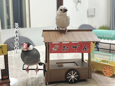 小物に慣れようキャンペーン実施中 カテゴリ : ブンチョ日誌 ジルが、おでん屋の屋根の上に止まらせられていました。あ、それはね、小物に慣れてもらいたくていろいろな物を出してきたの。公園みたいなもんだと思って自由に遊んでくれればいいから。若干、うっすら警戒心を持ちつつ屋根の上で休むジルたん。そして左下にはセラ。いや、 ... 2025年10月23日 続きを読む