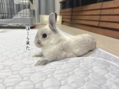 うさぎのルリ(1/3追記) カテゴリ : うさぎのルリ まだ娘が寝ている部屋に入って行き、電気をつけ、ルリのケージの扉を開けます。(見えないけれど、矢印のところにいます)「ルリくん、おいでよー」と言ってもなかなか出てこないルリ。大分経ってから、ようやく出てきます。 なぜかというと、娘が起きて、ペレットをもらえ ... 2026年01月03日 続きを読む