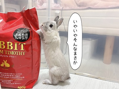 うさぎのルリ(1/14追記) カテゴリ : うさぎのルリ ご飯(ペレット)の袋とチモシー(牧草)の袋が似ていまして、多分、彼はペレットを欲しているのだと思われますが、それはチモシーの袋です。(残念ながら) いえ、本当にチモシーの袋です。説明しても、食欲大魔王にはわかっていただけない。ルリくんの前に指を出すと、匂 ... 2026年01月14日 続きを読む