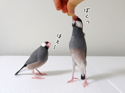 目の前にあるおやつ カテゴリ : おやつタイムブンチョ日誌 おやつに、ヒエと青米を用意しました。文鳥ふたりを投入します。はい、どうぞ。セラにヒエを、ラムに青米を。ふたりとも目の前のおやつを美味しそうに食べています。そこで、ヒエと青米を交換してみましょう。目の前のおやつの中身は変わりましたが特に気にすることなく美味 ... 2021年10月25日 続きを読む
